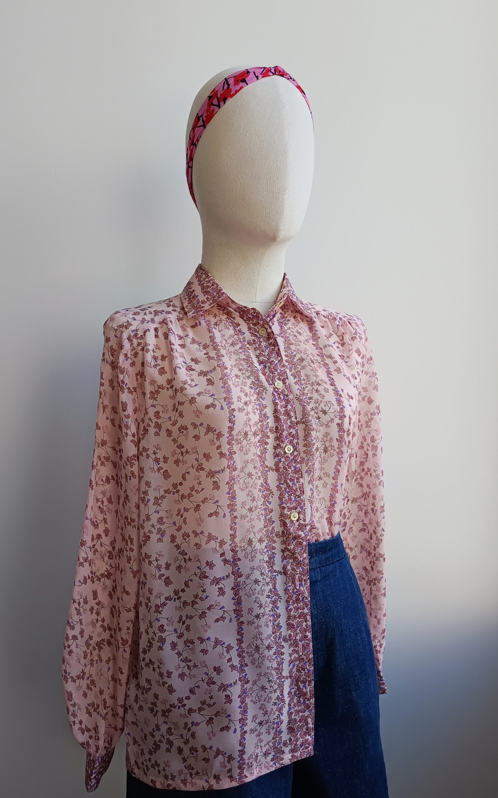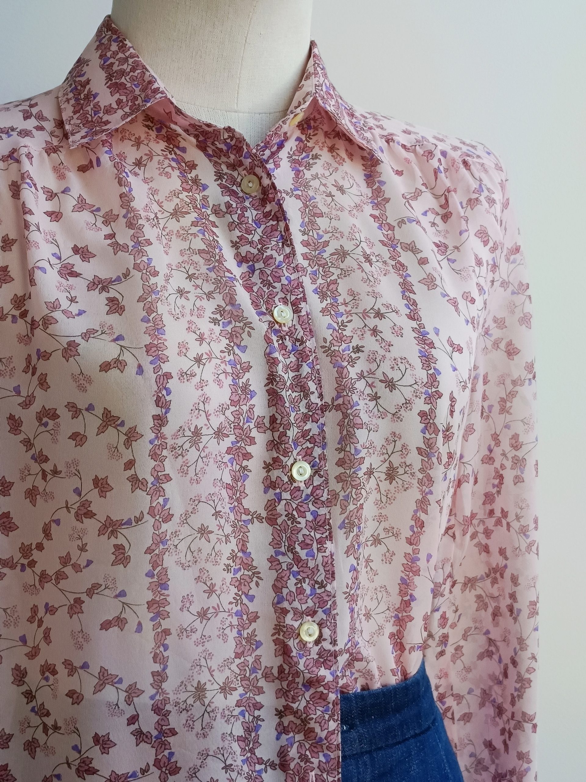 Camisa VINTAGE rosa hojitas TALLA 38-40